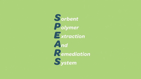 SPEARS – a technology consisting of plastic spikes embedded in a scalable mat-liner, absorbs environmental toxins such as polychlorinated biphenyls (PCBs), dioxin, polychlorinated dibenzodioxins, and dibenzofurans (PCDD/F) “like a sponge”. SPEARS allows for increased absorption capacity of these toxins, preventing them from becoming reintroduced into surrounding waters or sediments, passively absorbing them into the SPEARS over time. Once the absorption process is completed, the SPEARS are removed from the environment and the toxins trapped inside to enter a secondary destruction process where they are broken down and destroyed via chemical dehalogenation, at ambient temperatures and pressures. This method prevents the need for the addition of harmful chemicals to destroy the toxins or environmentally destructive methods such as capping or dredging to remove them from the environment.